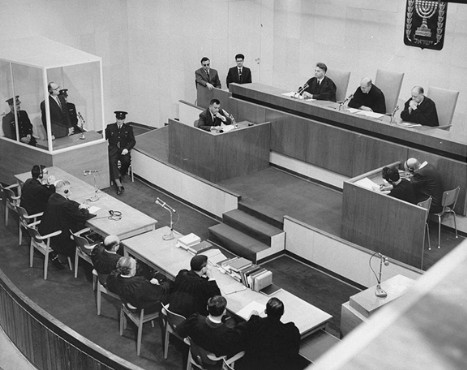 Adolf Eichmann po wojnie uciekł z amerykańskiego obozu dla jeńców i schronił się w Argentynie, gdzie początkowo pracował na firmie, a potem jako mechanik w miejscowej fabryce mercedesa. Szybko poczuł się tam bezpieczny i rozpoczął starania o sprowadzenie do Argentyny żony i dzieci. Tymczasem podjęto działania zmierzające do schwytania i postawienia przed sądem tego zbrodniarza. Premier Izraela David Ben-Gurion oświadczył, że obowiązkiem narodu żydowskiego jest ściganie zbrodniarzy odpowiedzialnych za zbrodnie przeciwko Żydom popełnione w okresie wojny, ale nikt nie był pewien czy Eichmann w ogóle żyje i gdzie należy go szukać. Znani tropiciele nazistowskich przestępców Szymon Wiesenthal i Tusia Friedman współpracowali z rządem Izraela, ale nawet te połączone wysiłki nie dały rezultatów i nie natrafiono na jego ślad.Dopiero jesienią 1959 roku władze Izraela otrzymały poufną wiadomość, że Eichmann mieszka w ubogiej dzielnicy na przedmieściach Buenos Aires i ukrywa się pod nazwiskiem Ricardo Klement. Rząd Izraela postanowił sprawdzić tę informację i wysłał agentów służb specjalnych (Mosadu), którzy przez kilka miesięcy obserwowali podejrzanego. Po upewnieniu się, że jest to osoba, której poszukują, 11 marca 1960 roku porwali wracającego z pracy Eichmanna, gdy wysiadł z autobusu w swojej dzielnicy, po czym przewieźli go na przesłuchanie w bezpieczne miejsce. Eichmann potwierdził swą prawdziwą tożsamość.Agenci Mosadu podali Eichmannowi środki odurzające i przemycili go do Izraela. Gdy wieść o uprowadzeniu Eichmanna dotarła do publicznej wiadomości, opinia światowa była mocno podzielona. Na przykład New York Times wypowiadał się zdecydowanie przeciwko tego rodzaju akcjom argumentując, że "żaden czyn niemoralny i bezprawny nie jest usprawiedliwieniem kolejnych działań podejmowanych wbrew prawu zasady prawa muszą być stosowane nawet w odniesieniu do najbardziej zdeprawowanych przestępców".Wielu stało jednak na stanowisku, że cel uświęca środki. W Izraelu panował entuzjazm i zadowolenie z powodu schwytania Eichmanna. 15 czerwca Argentyna wystosowała pismo, w którym stwierdzała, że w wyniku pogwałcenia suwerennych praw państwa podważone zostało wzajemne zaufanie a wytworzona atmosfera zagrożenia nie sprzyja zachowaniu pokoju na świecie.ONZ powołała specjalną sesję dla przedyskutowania tego przypadku. Argentyna domagała się ukarania sprawców i reparacji za pogwałcenie terytorialnej suwerenności państwa. Minister Spraw Zagranicznych Izraela Golda Meir argumentowała, że w tym szczególnym wypadku pogwałcenie prawa międzynarodowego było uzasadnione. W końcu przy mediacji USA zawarto umowę, zgodnie, z którą Izrael miał przeprosić za pogwałcenie suwerenności Argentyny, a ta z kolei zobowiązała się, że nie będzie domagać się wydania Eichmanna.Przez 11 miesięcy od czasu porwania Eichmann przebywał w położonym na uboczu i ściśle strzeżonym więzieniu w Izraelu, gdzie był przesłuchiwany przez śledczych przygotowujących akt oskarżenia. Materiał dowodowy był tak obfity, że trzeba było zorganizować specjalny departament zajmujący się dokumentacją sprawy. Było to tzw. Biuro 06 w którym zatrudniono przede wszystkim oficerów znających język niemiecki. Podjęto nadzwyczajne środki ostrożności, aby uniemożliwić zabójstwo, ucieczkę lub samobójstwo Eichmanna. Zainstalowano nawet broń przeciwlotniczą. Każdego dnia oficerowie śledczy nagrywali przesłuchania Eichmanna. W nocy przepisywano nagrania z taśmy i następnego dnia przedstawiano Eichmannowi do autoryzacji, aby mógł nanieść stosowne poprawki. Przy każdym sprostowaniu widnieje podpis więźnia. Do czasu rozpoczęcia procesu zeznania Eichmanna urosły do 3500 stron.Proces Eichmanna rozpoczął się w poniedziałek 11 kwietnia 1961 roku w sali teatru miejskiego w Jerozolimie, która została przekształcona na tę okazję w liczącą 750 miejsc salę sądową. Rozpoznanie sprawy powierzono kolegium orzekającemu, w skład, którego weszli: urodzony w Polsce sędzia Moshe Landau oraz sędziowie Benjamin Halevy i Icchak Ravel, którzy wychowali się w Niemczech i mogli przesłuchiwać oskarżonego w jego ojczystym języku.. Głównym oskarżycielem był świeżo mianowany prokurator generalny Gedeon Hausner. Podstawę prawną procesu Eichmanna stanowiła uchwalona w Izraelu w 1950 roku ustawa przewidująca ściganie zbrodniarzy nazistowskich i kolaborantów. Postawiono mu 15 następujący ch zarzutów:, że był odpowiedzialny za zagładę milionów Żydów, że przed śmiercią przetrzymywał ich w nieludzkich warunkach, że naraził ich na poważną utratę zdrowia fizycznego i psychicznego, że podejmował działania zmierzające do sterylizacji Żydów lub pozbawienia ich zdolności rozrodczych w inny sposób, że był odpowiedzialny za niewolę, głód i deportacje milionów Żydów, że odpowiadał za prześladowania Żydów oparte na narodowych rasowych i politycznych przesłankach, że odpowiadał za grabież mienia żydowskiego i stosowanie nieludzkich środków nacisku, w tym wymuszania, rabunku, terroru i przemocy, że wszystkie powyżej wymienione zarzuty kwalifikują się jako podlegające karze za zbrodnie wojenne, że odpowiadał za deportacje 500.000 Polaków, że odpowiadał za deportacje 14.000 Słoweńców, że odpowiadał za deportacje 10.000 Romów, że był odpowiedzialny za deportacje i śmierć 100 dzieci z czeskiej wsi Lidice. Ostatnie trzy punkty oskarżenia dotyczyły przynależności do zbrodniczych organizacji: Gestapo, SD i SS. Zanim Eichmann zgłosił apelację, obrona postawiła wniosek o oddalenie oskarżenia argumentując, że sędziowie pochodzenia żydowskiego nie będą w stanie podjąć obiektywnego stanowiska w sprawie. Prokurator Hausner odparł zarzuty twierdząc, że żaden skład sędziowski bez względu na pochodzenie nie mógłby i nie powi